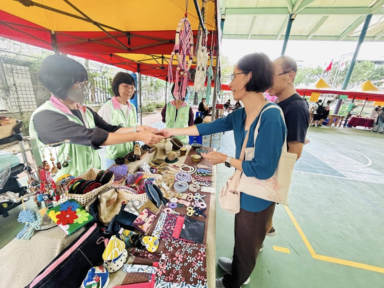 在繽紛的攤位上,一件件用心製作的手工藝品,承載著 長青銀學園學員的熱情與生命能量。