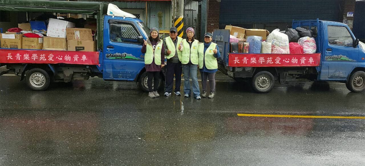 在風雨無阻的日子裡,長青銀學園的志工依然守護初心,開著愛心物資車將一箱箱物資送進偏鄉社區。